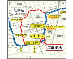このため 、 「兵庫入口」 「兵庫」 「兵庫コミュニティセンター」バス停には、バスが止まりませんので